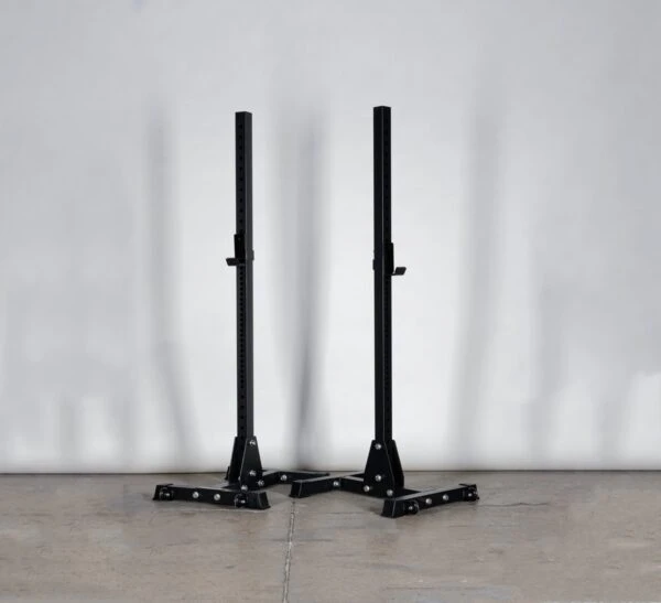 Weighing in at a beefy 73lbs for maximum stability, the squat stands 3.0 can be used in home gyms or commercial settings, for instance, weightlifting clubs.
