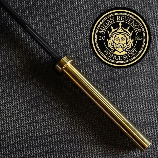 Arguably the sexiest looking barbell on the market, the Fringe Sport Midas’ Revenge Bar has sleeves covered in gold titanium and immaculately designed end caps that feature a king. There is nothing mundane about the Midas’ Revenge bar. It has a 190,000 PSI tensile strength and uses a moderately-aggressive pyramid knurl, which Fringe Sports states is coated in a cerakote finish so it is built to last.