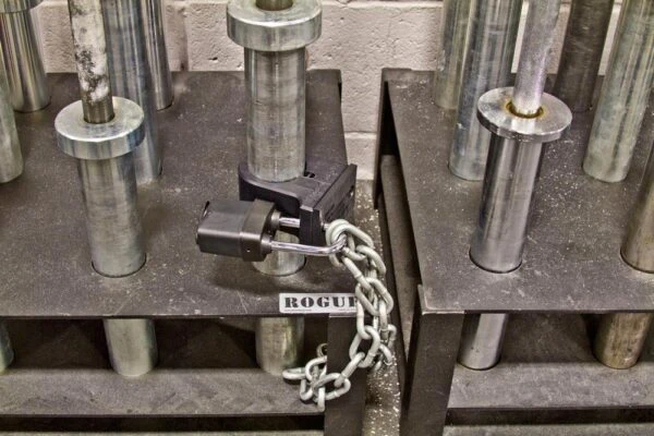 The Prolocâ„¢ Blocker is great if you have to store gear in a public gym. The Blocker locks one end of the bar which renders the bar useless. Use a chain to secure your bar to a fixed object. You can also use it on weight trees if you don’t want anyone using your plates.